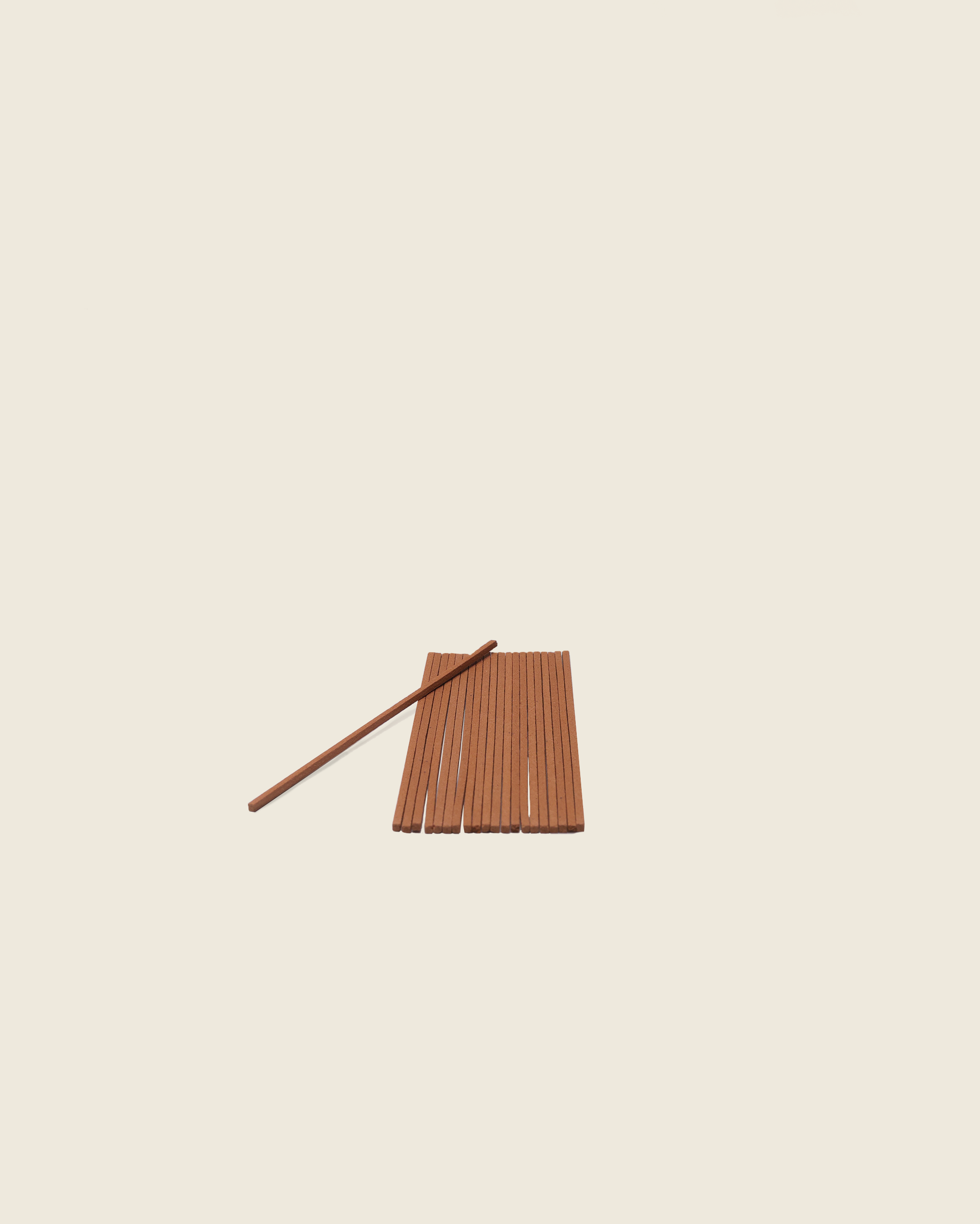 Light the incense stick, gently blow out the flame, and place it at least 30 cm away from your nose. Gently waft the fragrance toward you to experience the natural botanical aroma released through burning.